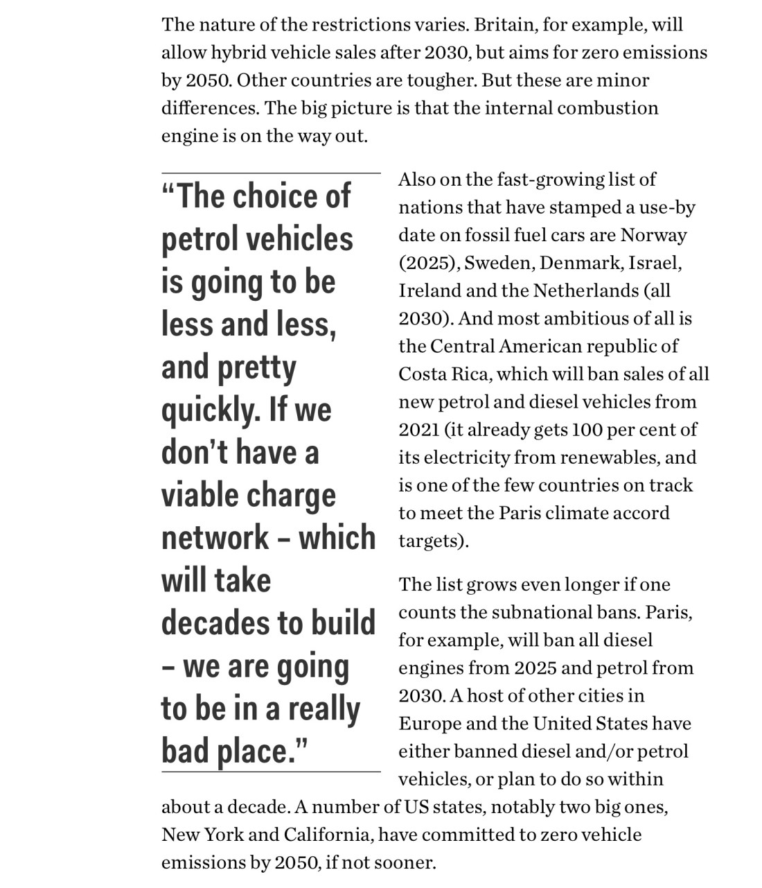 There is an interesting article in The Saturday Paper article titled ‘All Torque, Not Enough Action’ by Mike Seccombe, (6 April 2019). The paragraph of interest commences: ‘Also, on the fast growing list of nations….’