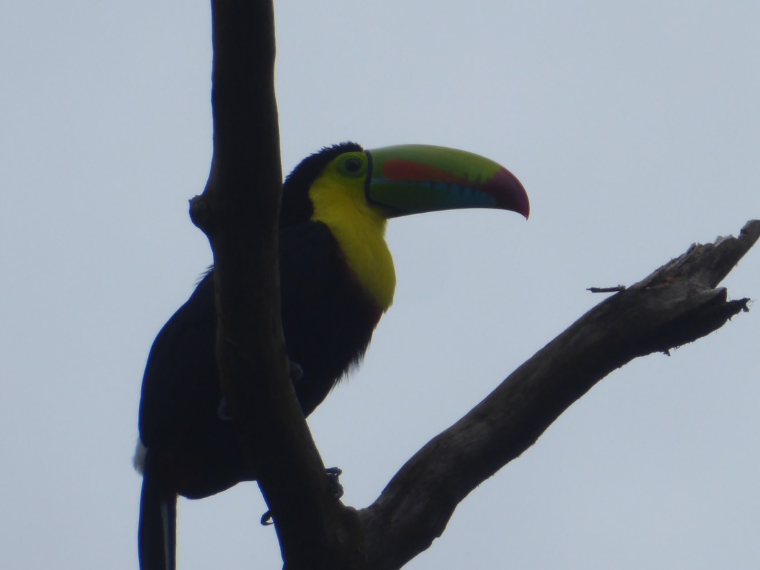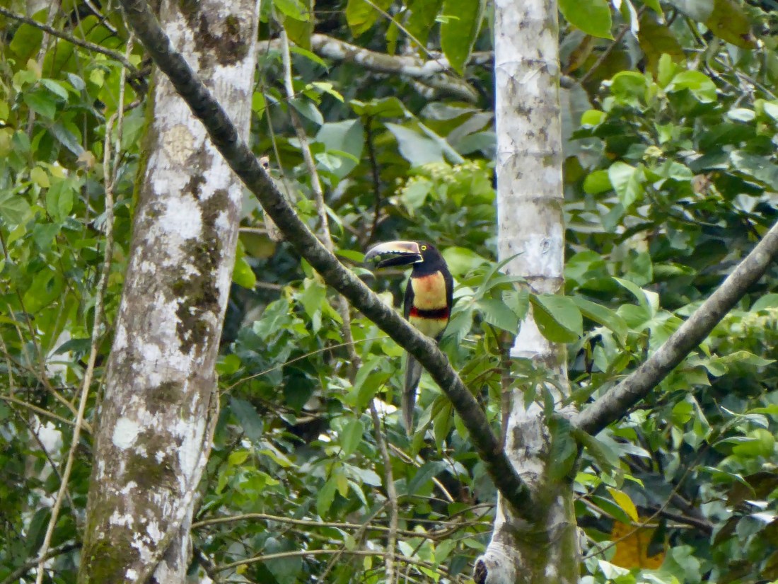 It was extremely quiet bird wise – we did not hear birds calling until later in the morning. A sudden swoosh through the trees and two Black Guans landed almost above us. These large black birds have turquoise-purple bills.
