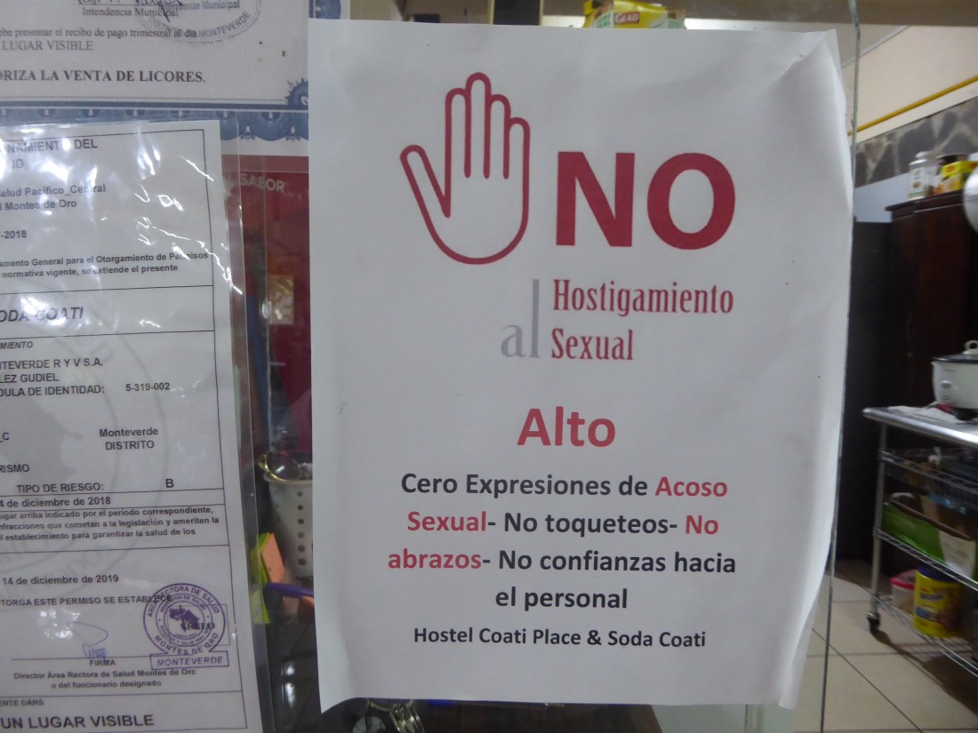Costa Rica is a progressive country, and the population is proud of its environmental credentials. And tourism figures back that up. Apart from this, cigarettes are hidden from view in shops, and no smoking signs abound in public places. Anti sexual harassment and foul language signs are in shops and even buses.
